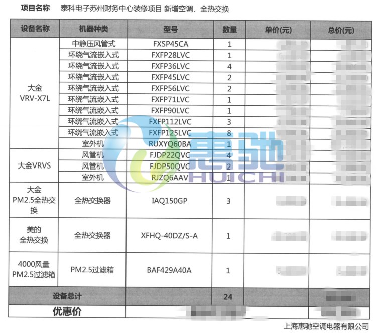 項目名稱:泰科電子蘇州財務中心-中央空調系統工程