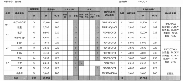 舒適節能系統配置匯總表