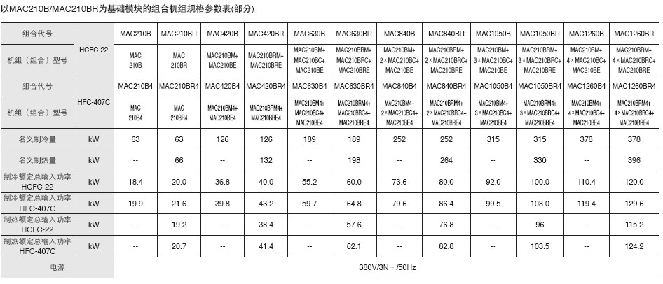 ■三種基本模塊單元,可實(shí)現(xiàn)1?10 個(gè)同冷量模塊自由組合。另有HFC-407C 環(huán)保制冷劑可供選擇。