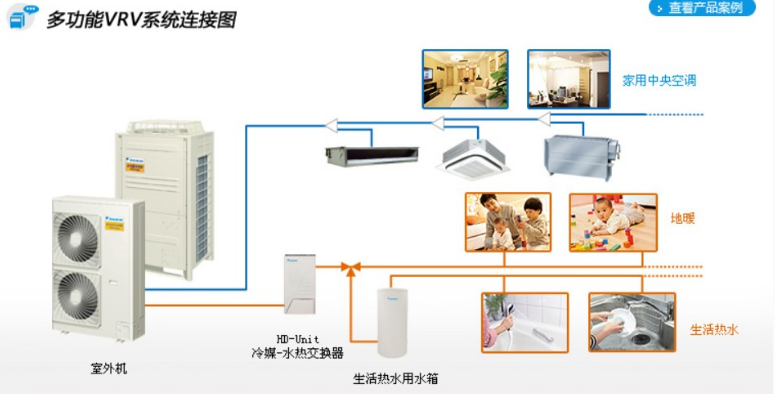 和商用的,家用的比較小,適合比較小的面積,樣本沒在身邊,制冷量好像是20多kw,VRVN不知道說的是什么,商用的叫VRVⅢ系列了,是模塊式地拼裝成的機組,這個制冷量就比較大了。