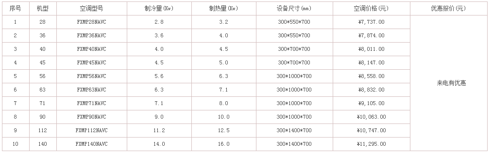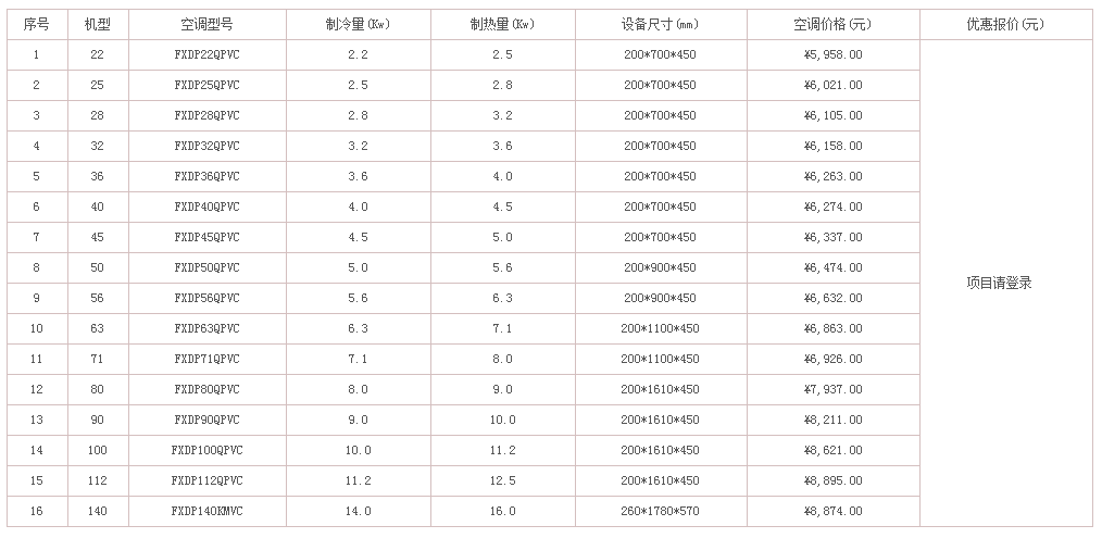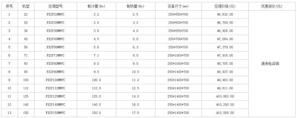 的經銷商,有能力也有義務為大家解決這個急切的問題。下面列出了不同類型和不同型號的大金中央空調的價格,有需要的可以聯系惠馳空調,隨時為您解答。